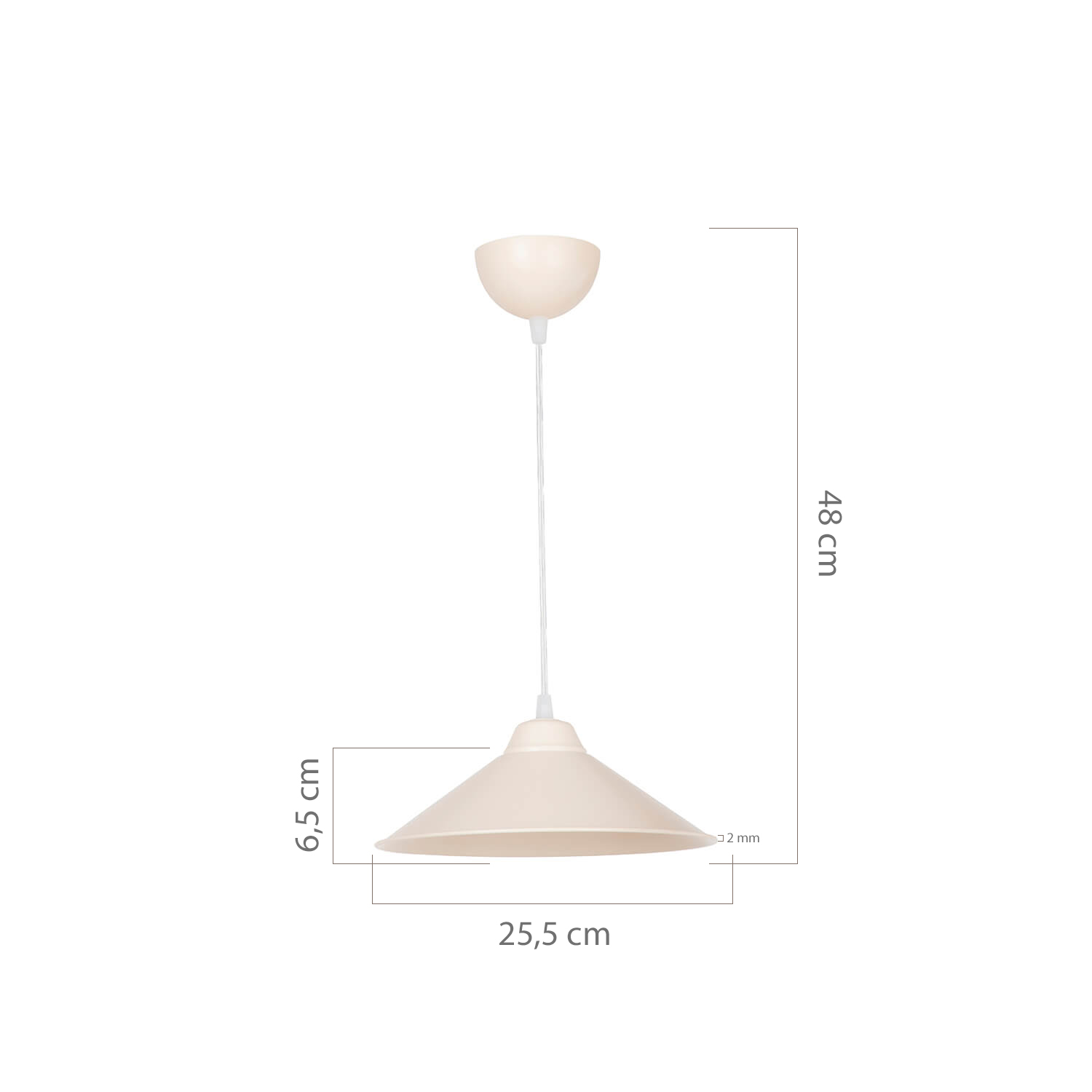 Diameter: 25.5 cm Height from Ceiling: 48 cm Hat Length: 6.5 cm Roof Thickness: 2 mm .. It is made of ABS and POLICARBONAT mixture plastic material and special sandblasting technique is applied on the surface. . Thanks to the sandblasting technique and raw material mixture applied on the hat, the product has a transparent appearance. . "Maya Pendant", which has an aesthetic appearance thanks to the 30-degree angle given to the hat edges, adds a different ambiance to the environment it is located in. . The product can be easily cleaned with a damp cloth.
