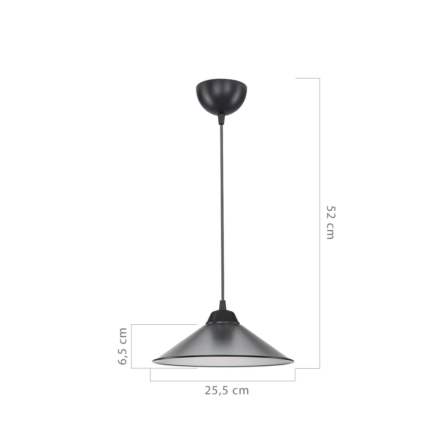 Diameter: 25.5 cm Height from Ceiling: 48 cm Hat Length: 6.5 cm Hat Thickness: 2 mm. . It is made of ABS and POLICARBONAT mixture plastic material and a special sandblasting technique is applied on the surface. . Thanks to the sandblasting technique and raw material mixture applied on the hat, the product has a transparent appearance. . "Maya Pendant", which has an aesthetic appearance thanks to the 30-degree angle given to the hat edges, adds a different ambiance to the environment it is located in. . Product cleaning can be done easily with a damp cloth.