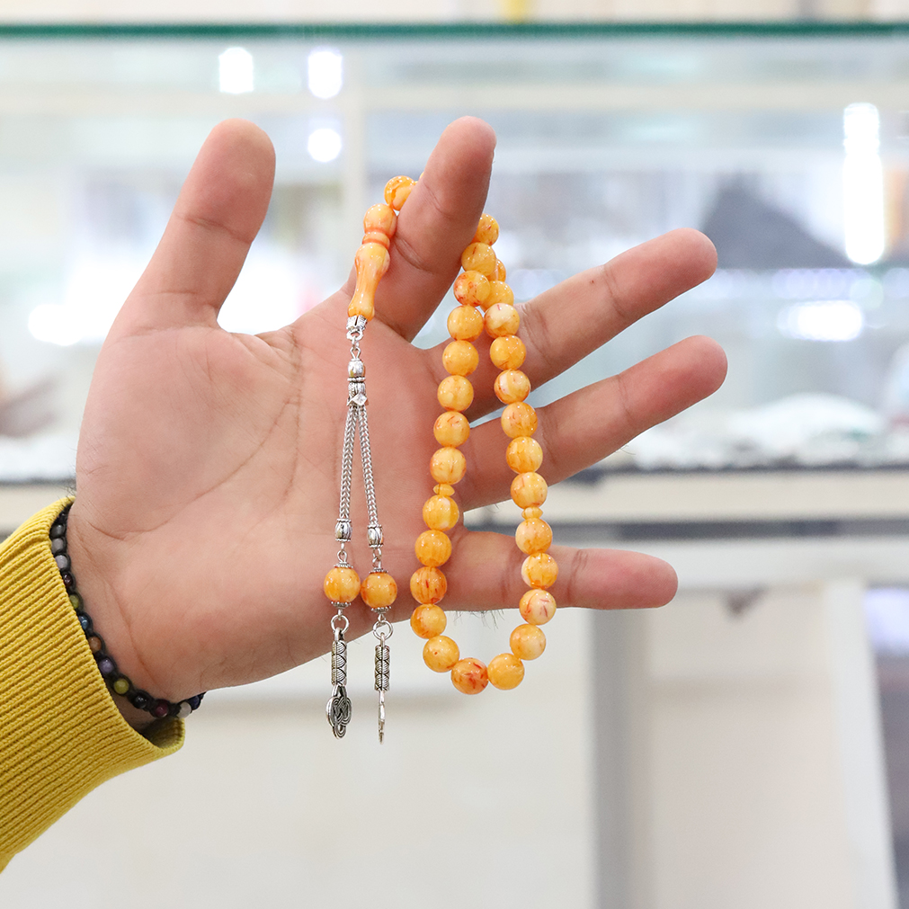 Squeezing Amber or drop amber amber powders left behind from the materials used in making prayer beads are compressed and pressed. Thanks to this pressing process, the powders get the appearance of a hard stone again. This amber variety is called Powder amber.