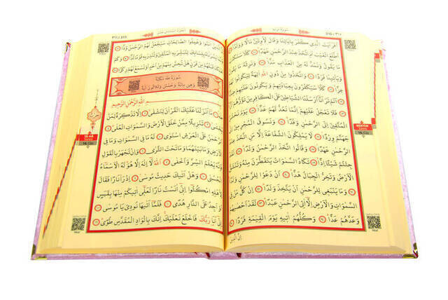 All of the velvet covered Qur'an are equipped with protective corner bars that ensure that the pages are damaged and that the covered velvet fabric remains stable.