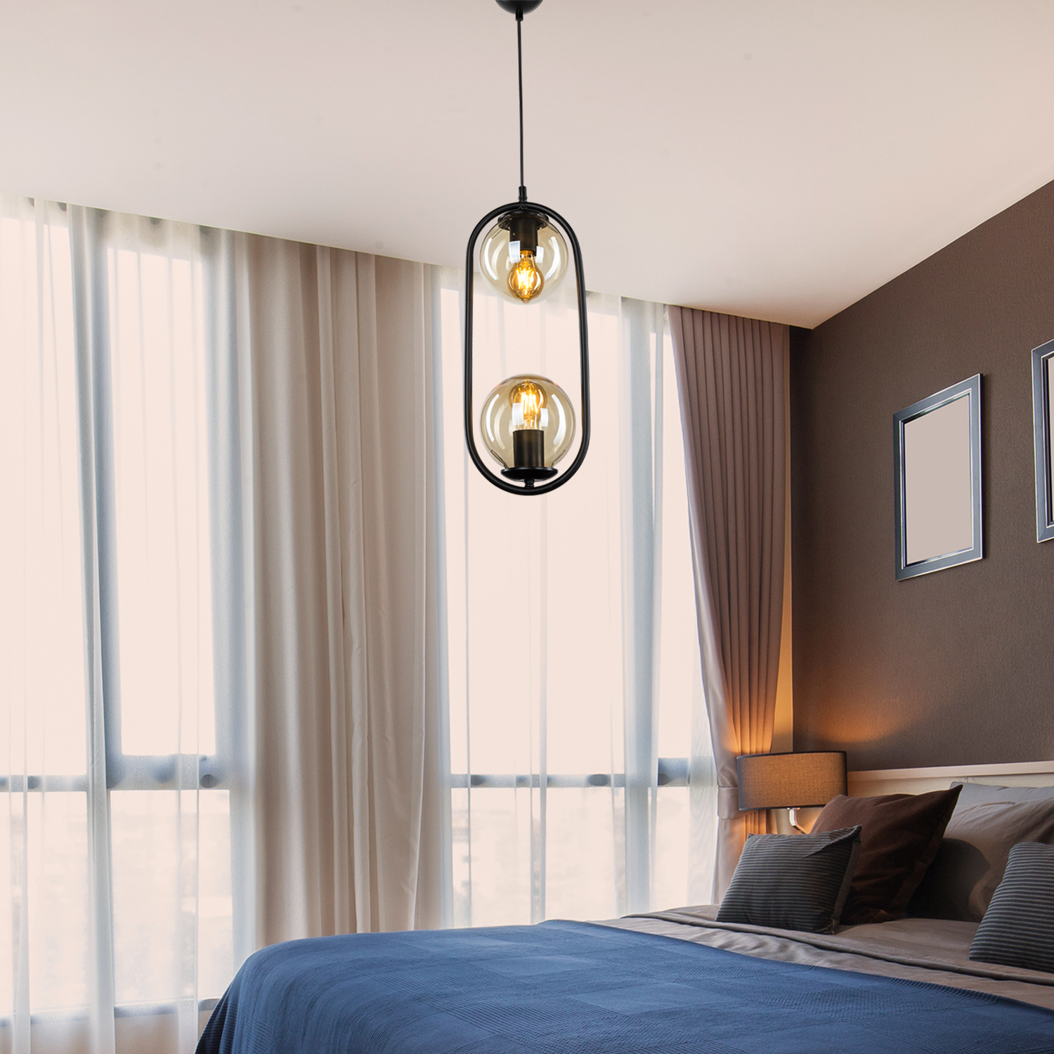 . Designed by the combination of electrostatic painted decorative metal, black plated lampholder accessories and honey glasses, "Narissa 2-Piece Pendant Lamp" reflects the modern style to the environment where it is located.