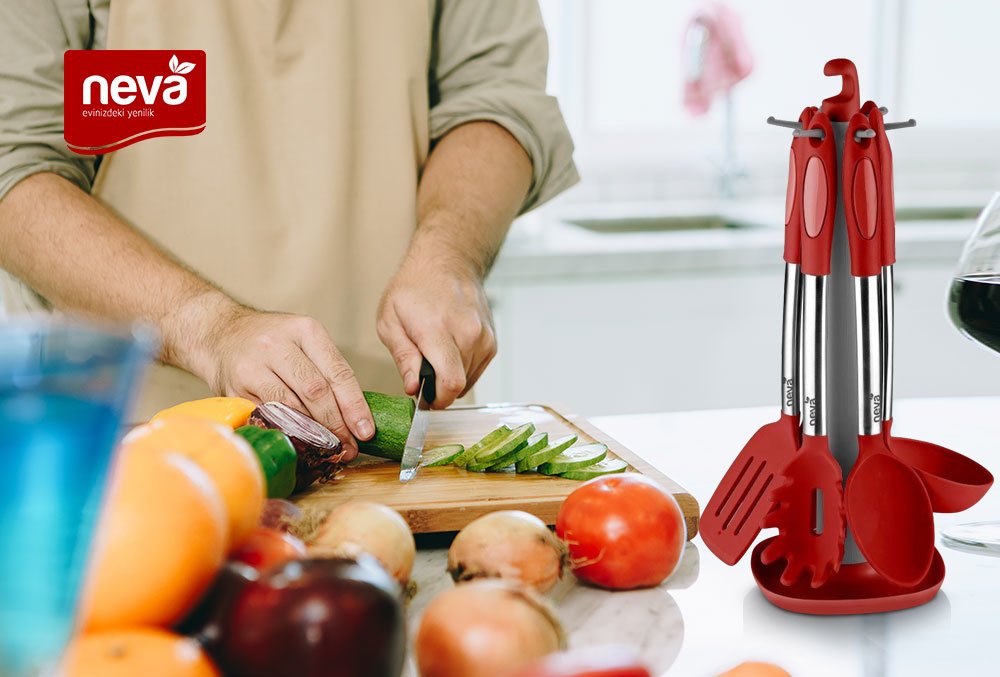 Teslimat: 1x Neva Sweet 7 Parça Mutfak Servis Aletleri Seti Paslanmaz Çelik | Kırmızı | N2356