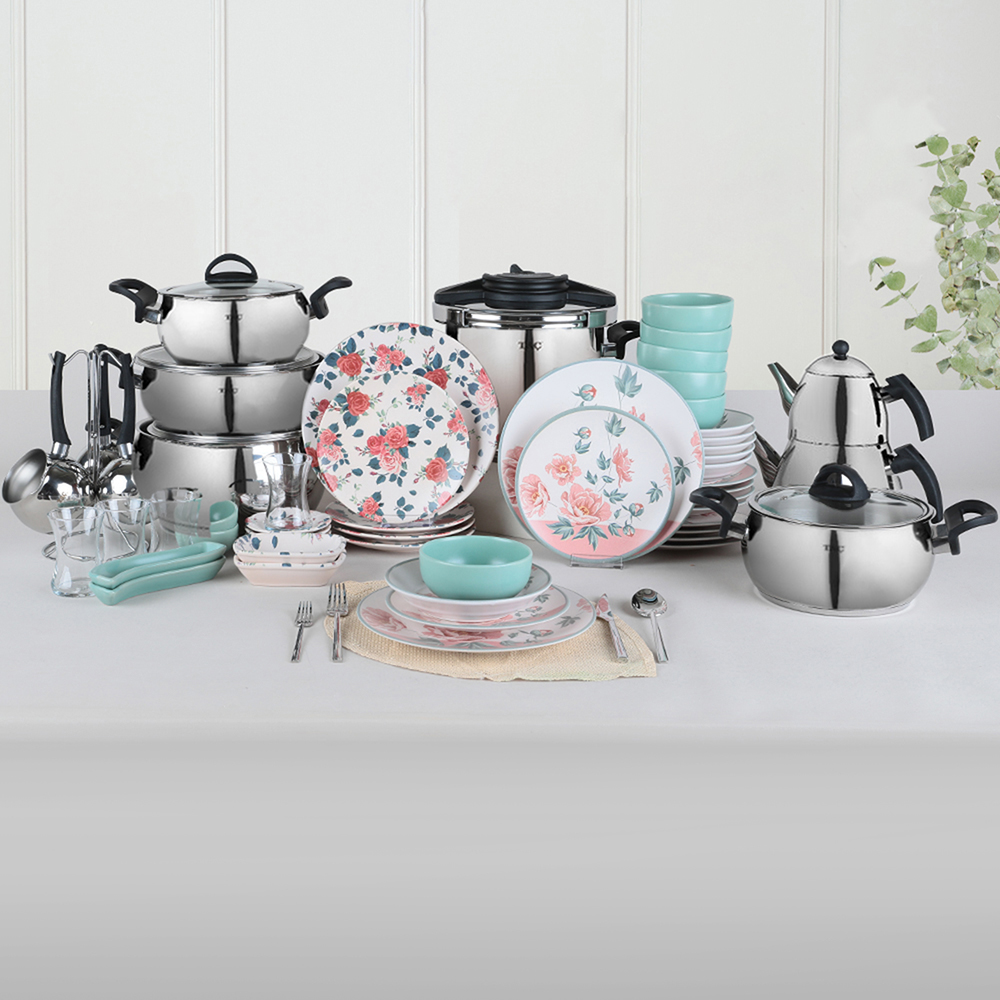 The products that will be the most precious pieces of your kitchen for those who just got married or who want to renew their kitchen from beginning to end, come together with Keramika Rosetta 85 Piece 6 Person Dowry Package. These packages, which include breakfast / dinner sets that will amaze at your tables with their colors and patterns, come with Aryıldız Fork / Spoon / Knife set that will make delicate touches to your presentations. You will amaze your guests with this package, which includes the Crown Ventus series, which is one of the best quality dowry sets of Taç, where you can prepare your delicious tastes skillfully. You can also choose this package, which will be a great gift option for your loved ones, to make them remember you in the kitchen and at every table.