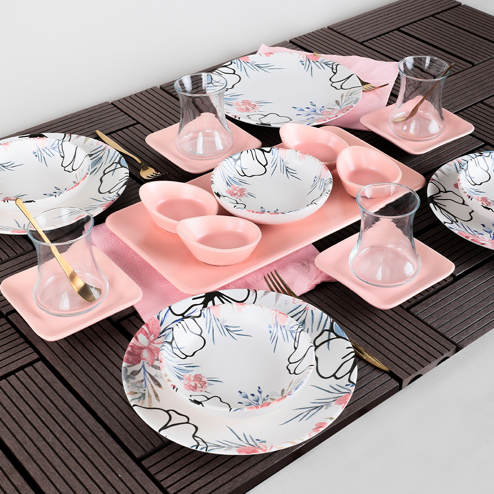 The Keramika Rossy 21-Piece 4-Person breakfast set, where eye-catching floral patterns come together with soft colors, will brighten your tables. With this set that will turn your tables into flower gardens, your guests will not be able to take their eyes off your tables. You can choose this breakfast set as a special gift or you can choose to serve your loved ones a nice Sunday breakfast.