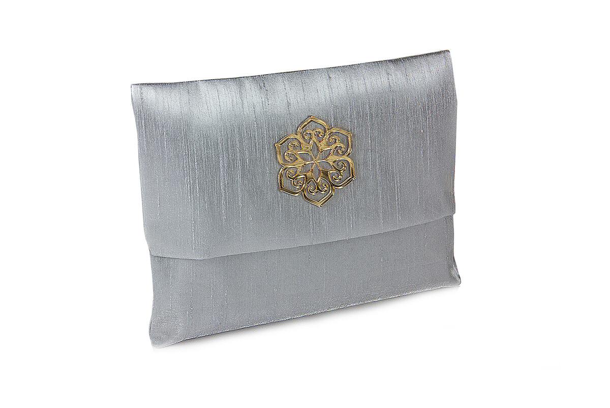 - Patterned slub fabric pouch cut from gold color plexi