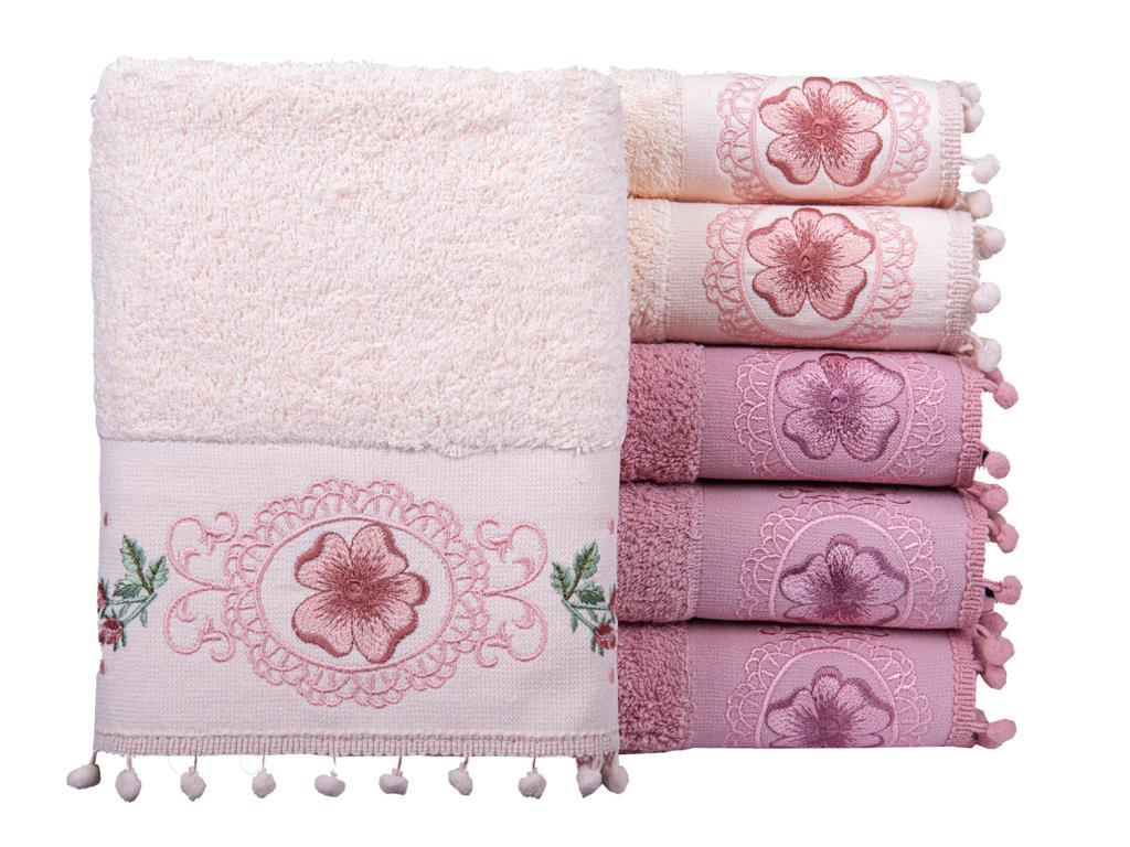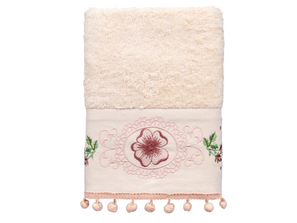 A Stylish Pattern Has Been Created With Embroidery And Pompom On The Towel.