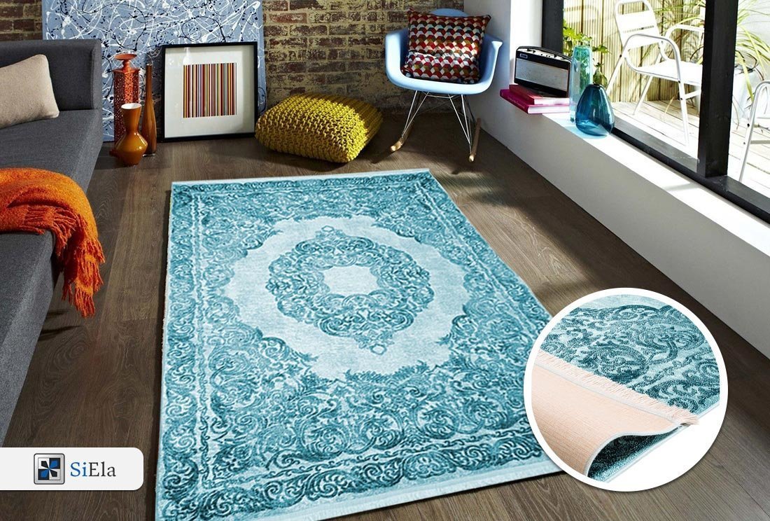 Teslimat: 1x Siela | Latex Yıkanabilen Halı | Mavi | 1510-Blue