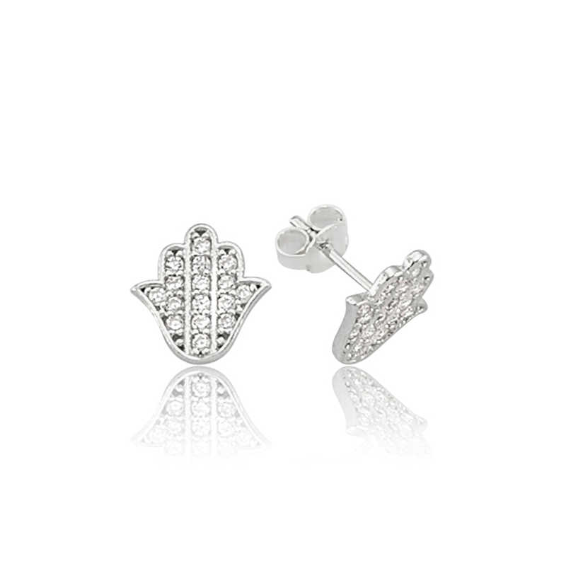 Although Hz. Although it is known as Fatma's hand, it is called "hamse" in Arabic. Hamse means five and indicates the number of fingers of a hand. Hz. One day, while Fatma was roasting halva in the kitchen, her husband Hz. Ali sees it and dips his hand into the cooked halva, but nothing happens, he continues to roast the halva like this. From that day on, it is believed that the sanctity of his hand, its power, and its invincibility. Every difficulty will be overcome by his hand. This unique earring; It is a perfect option for special occasions as a birthday gift, Valentine's Day gift or as a gift for mothers. This wonderful design white Fatma hand earrings; It is made of 925 sterling silver. Rhodium plated on silver. All silver earring models with rhodium plating preserve their shine for a long time and delay oxidation. The stones on the earrings are zircon. As with all silver women's earrings, Fatma main hand studded earring model is produced by hand. Due to silver and precious stones, there may be a deviation of ± 10% in the average product weight stated.