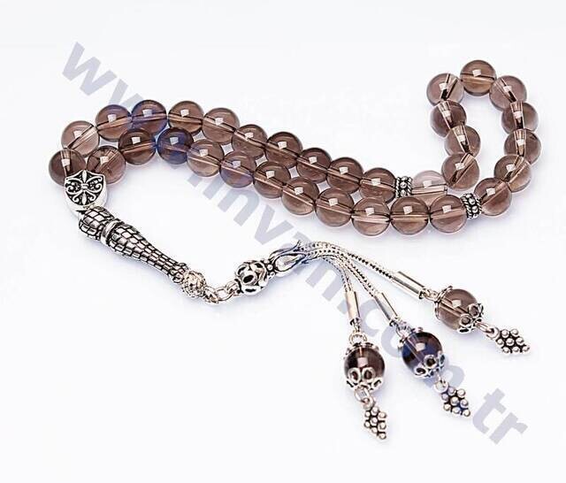 This smoky quartz stone rosary is specially selected from the most beautiful shades of smoky quartz stone. Made of this smoky quartz stone, the tasbih of the rosary is in a model and design that you cannot find anywhere, imams, separators, and these smoky quartz prayer beads are produced in the model that our company has personally designed. In addition to the original natural stones, some ornamental rosary apparatuses are used in our products to increase the aesthetics of the products and the aesthetic appearance of the products has been increased. In addition, our original natural stone prayer beads are lined on a special rubber rope, which is a non-breakable stone rope, which is resistant to breaking and disintegration, used to eliminate the problem of cutting the rope in the natural stone prayer beads specially produced by our company. In normal use, this rope is highly durable, flexible and long-lasting. With these features, you can easily use our products for a long time without experiencing problems such as thread breakage and rosary dispersion. In addition, due to the flexible elastic structure of this special thread; Our rosary can be worn on every wrist easily, so you can wear it on your wrist from time to time and use it as a bracelet. We recommend you to buy a smoky quartz stone rosary, produced with a special design and durable special thread. In addition, the prices of smoky quartz stone prayer beads are at an affordable price close to the wholesale price. You can use these natural stone prayer beads for both shaking and stress relief. In addition, since the number of beads of these prayer beads is 33, you can also use these prayer beads for dhikr or for prayer. You can also use these multi-purpose prayer beads to benefit from their magnificent energy and benefits. Since this product is made of original smoky quartz stone, smoky quartz stone has the following psychological and physical benefits; Its most known and used feature is that it is good for panic attacks. It is a stone that can be used during meditation. It is good for nervous disorders. It is good for stress. It is effective in foot diseases. It is good for extreme breakouts. It increases the sense of trust. It helps the person to be open to new experiences. Increases entrepreneurial ability. It helps the person to focus on the moment and live the moment in the best way. It has effects on communication disorders. It prevents us from having terrible nightmares. It gives the person peace and quiet. It helps transform negative energy into positive energy.