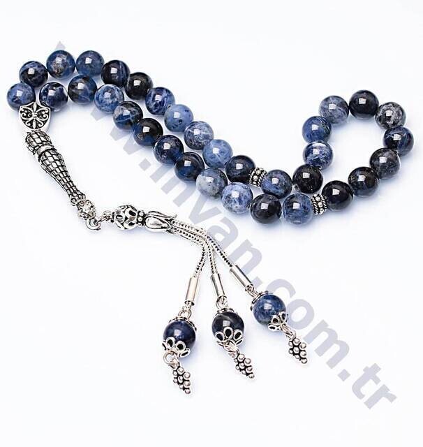 This sodalite natural stone rosary is specially selected from the most beautiful shades of sodalite stone. The tasbi of this sodalite stone rosary is in a model and design that you cannot find anywhere else, imams and separators, and these sodalite stone prayer beads are produced in the model that our company has personally designed. In addition to the original natural stones, some ornamental rosary apparatuses are used in our products to increase the aesthetics of the products and the aesthetic appearance of the products has been increased. In addition, our original sodalite prayer beads are lined on a special rubber rope, which is a non-breaking stone rope, which is resistant to breaking and disintegration, used to eliminate the problem of cutting the rope in the natural stone prayer beads specially produced by our company. In normal use, this rope is highly durable, flexible and long-lasting. With these features, you can easily use our products for a long time without experiencing problems such as thread breakage and rosary dispersion. In addition, due to the flexible elastic structure of this special thread; Our rosary can be worn on every wrist easily, so you can wear it on your wrist from time to time and use it as a bracelet. In addition, due to the flexible elastic structure of this special thread; Our rosary can be worn on every wrist easily, so you can wear it on your wrist from time to time and use it as a bracelet. We recommend you to buy a sodalite rosary, produced with a special design and durable special thread. In addition, the price of sodalite rosary is also at an affordable price close to the wholesale price. You can use these natural stone prayer beads for both shaking and stress relief. In addition, since the number of beads of these prayer beads is 33, you can also use these prayer beads for dhikr or for prayer. You can also use these multi-purpose prayer beads to benefit from their magnificent energy and benefits. Since this product is produced from original sodalite stone, sodalite stone has the following psychological and physical benefits; Sodalite stone is effective against depression. Sodalite increases concentration in a person. Sodalite stone is good for ailments in the throat. These problems end when people who suffer from nausea use sodalite stone during the journey. It clears the confusion in the mind and allows us to focus on the goals we set. It is beneficial for people who are depressed, drug addicts, and allows us to get rid of addiction and depression. It is useful for people who have difficulty expressing their feelings and having difficulty speaking. If timid people use this stone close to their heart, it helps to heal these problems.