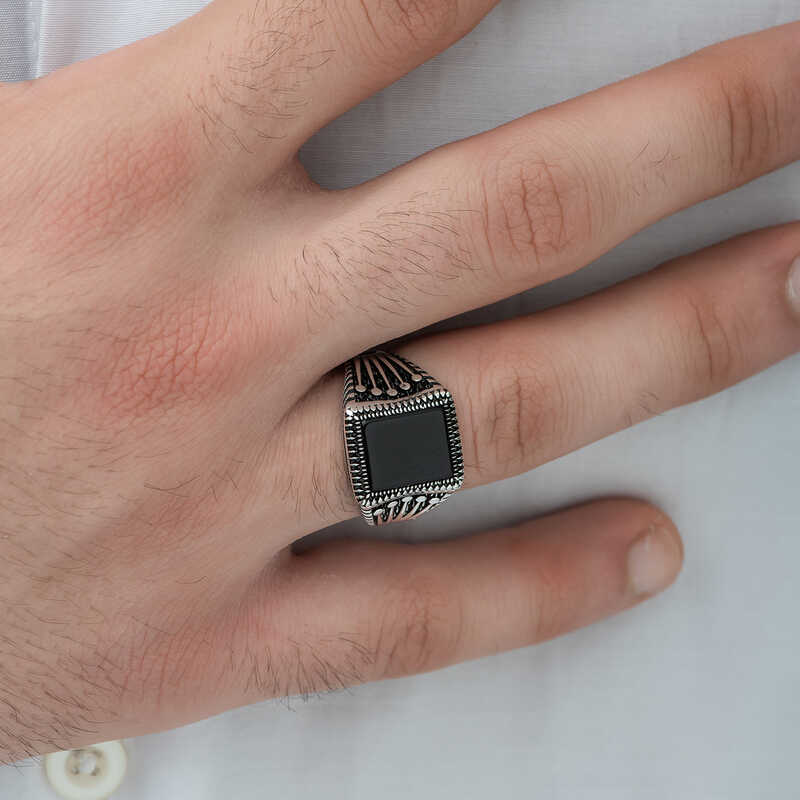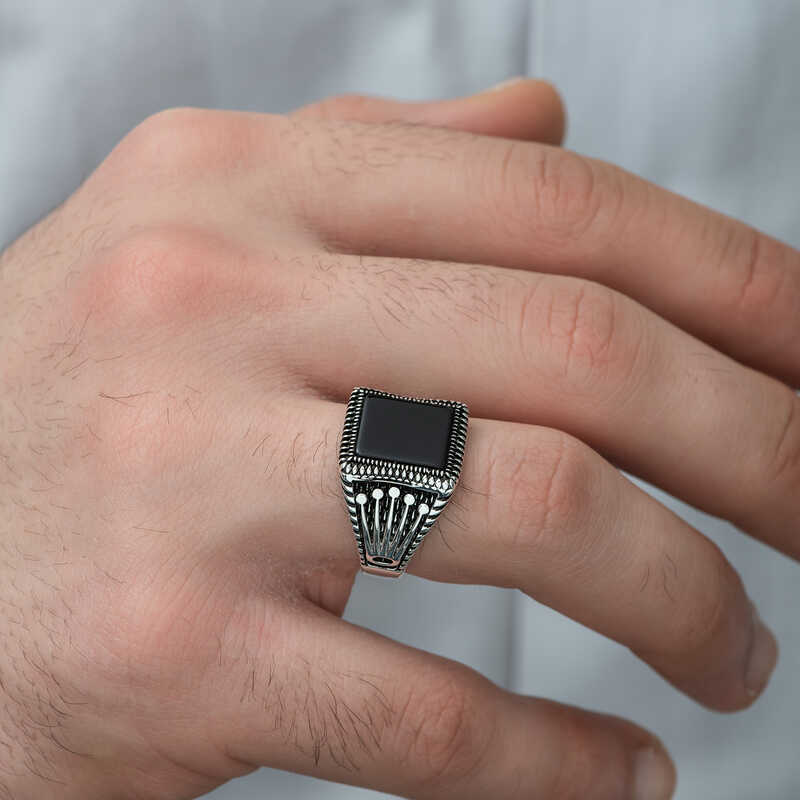 Reaching the earth over millions of years, onyx stone is a stone formed through the heating and cooling of rocks and some components over time. Onyx stone is known as luck stone and is a semi-precious stone type. Onyx has been used in the manufacture of various ornaments and jewelry from ancient times to the present, due to its machinability and aesthetic appearance. Onyx is the sacred stone of the earth signs Taurus, Virgo and Capricorn. People with this zodiac sign can protect themselves from negative energy by choosing accessories with onyx stones. The finger-shaped crown mark on the sides of the ring symbolizes the skillful fingers of the master. On the other hand, with the image of the king's crown, it is described as a symbol of power, power or nobility. This stylish ring; You can gift it to yourself or your loved ones on their birthday, father's day and other special occasions. This stylish ring is made of 925 sterling silver. Oxide coating is made on silver. Oxide-plated rings have an authentic look. As with all men's rings, the silver onyx stone knitted patterned men's ring model is also handcrafted. Due to silver and precious stones, there may be a deviation of ± 10% in the average product weight stated.