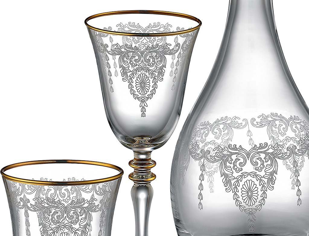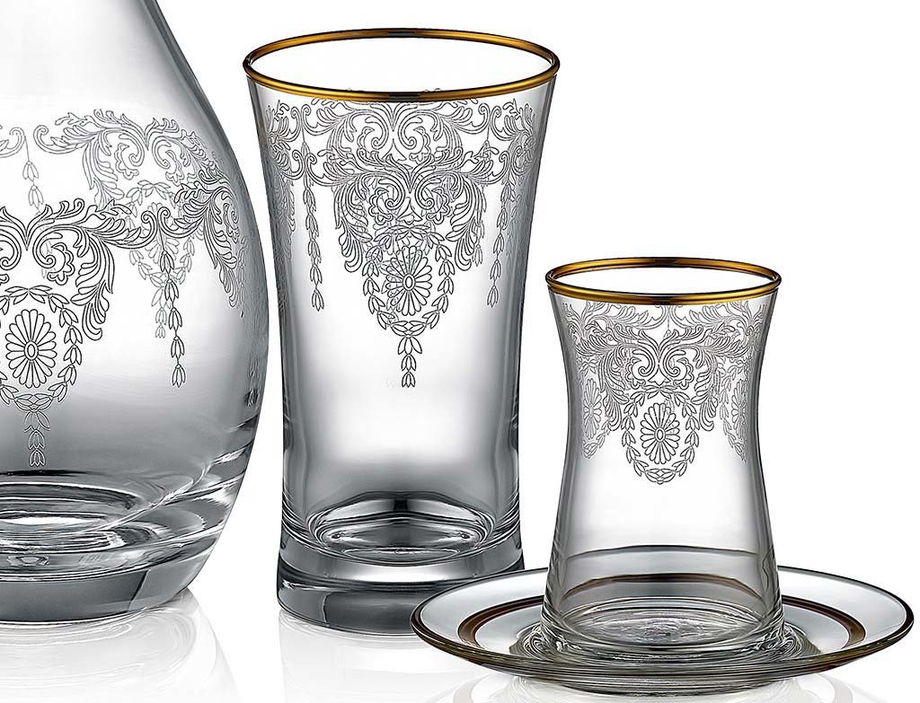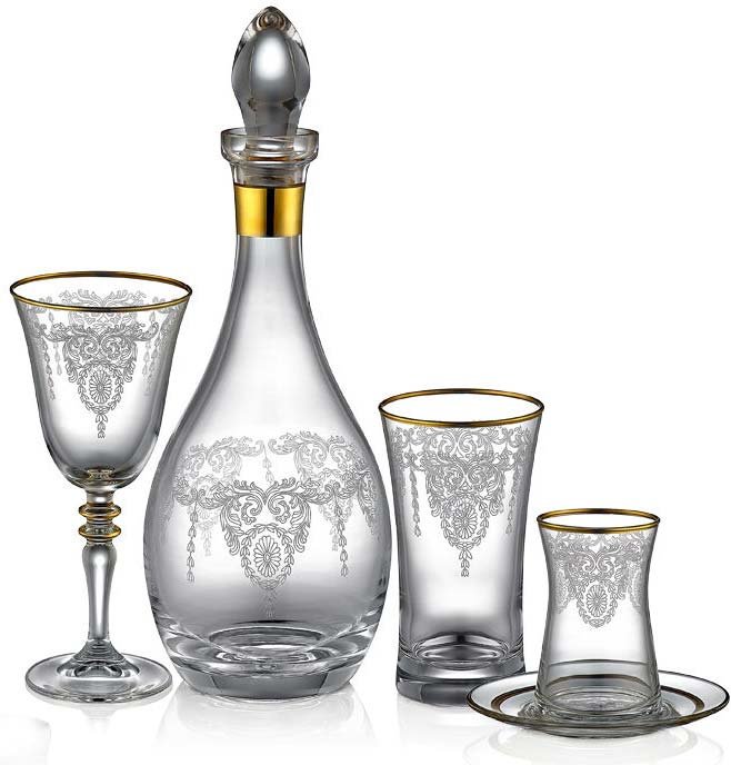 The Crown Lyric Shine Gold 49-Piece Glass Set, in which elegance is blended with stylish motifs, draws attention with its table presentations that fascinate those who see it. The glass set, which brings out its golden color in every piece, will bring a completely different atmosphere to your table with its patterns.