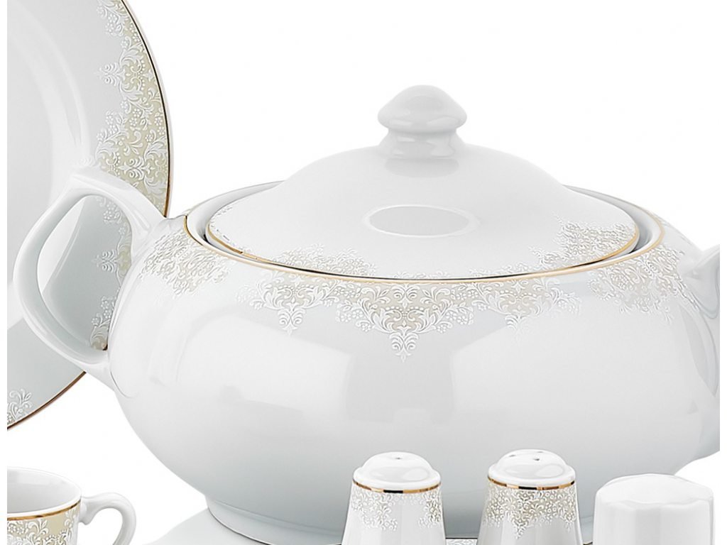 Delivery and Dimensions: 1 x Crown Valery Mastery 85 Piece Dinnerware | Oval | Gold | 12 People | TAC-2089