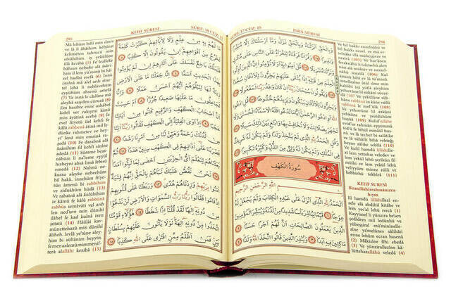 MEDIUM SIZE, TWO-COLORED, TURKISH READING QURAN KERIM CHARACTERISTICS