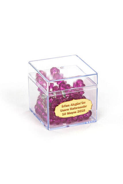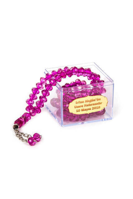 Transparent Plastic Boxed, 99 Pieces Crystal Hajj Umrah Gift Rosary Fuchsia Special Plate