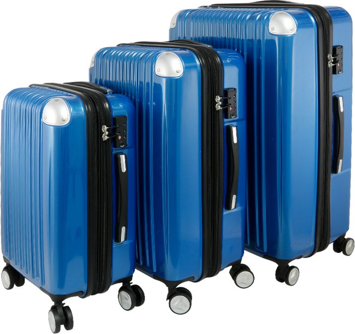 Delivery and Dimensions: 1 x Viviana Hard Case 3 Pcs Luxury Luggage Set with 360° Rotating Wheels | Blue | TSA Locked | S5214-blue