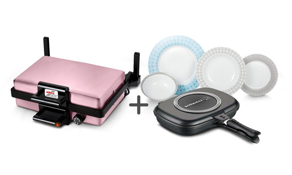 Livraison: 1x Silex Pink Grill Machine & Korkmaz Siesta Collection 48 Piece Vaisselle & Korkmaz Duplo Fish Pan