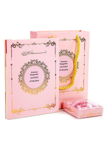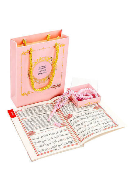 Informations sur le produit "20 PCS - Ensemble Yasin - Taille du sac - 64 Pages - Avec étiquette de nom - Chapelet - Avec sac en carton - Couleur rose"