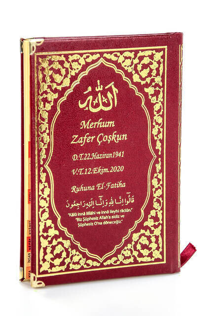 Informations sur le produit "50 PCS - Nom Imprimé Livre à Couverture Rigide de Yasin - Taille Moyenne - Motif Classique - Couleur Rouge Bordeaux"