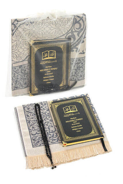 Informations sur le produit "50 PCS - Nom imprimé livre à couverture rigide de Yasin - Tapis de prière - Ensemble de chapelet en cristal - Cadeaux islamiques"