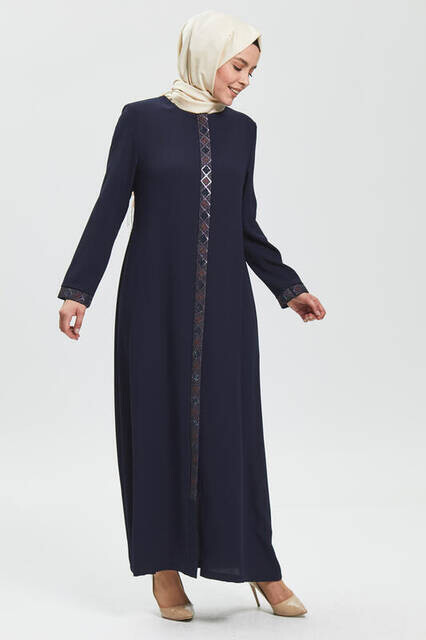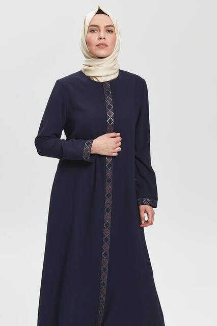 Informations sur le produit "Abaya Brodée Bleu Marine Foncé 9081-20"