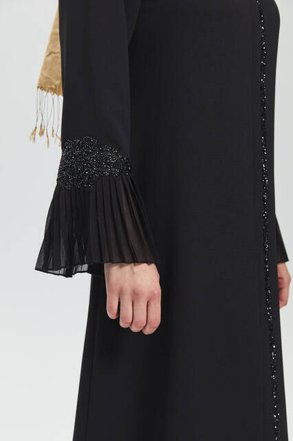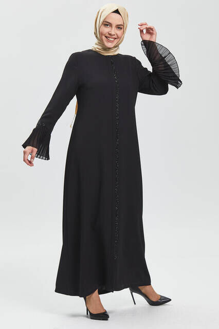Informations sur le produit "Abaya à froufrous en pierre avec manche noir profond 9047-20"