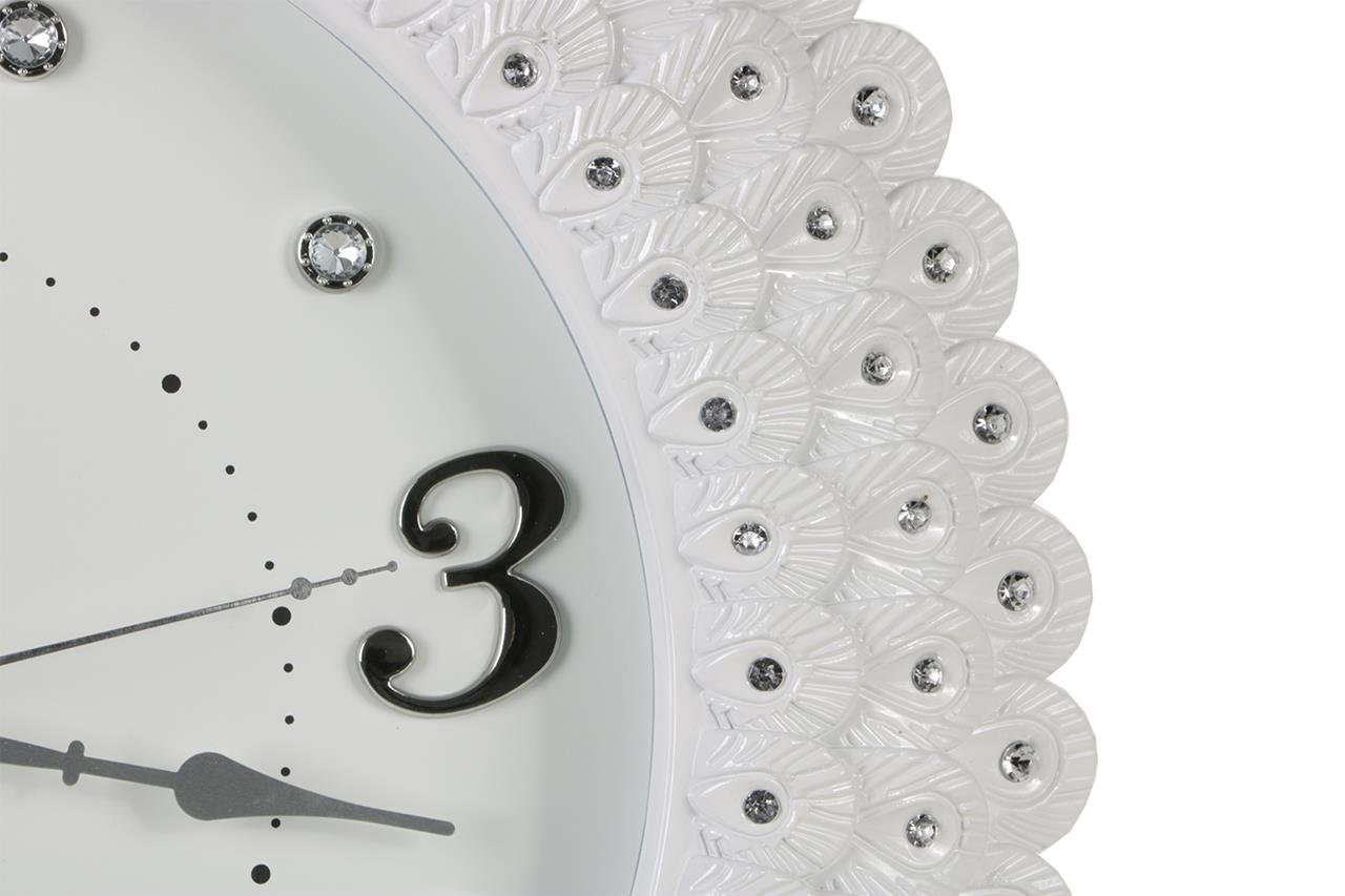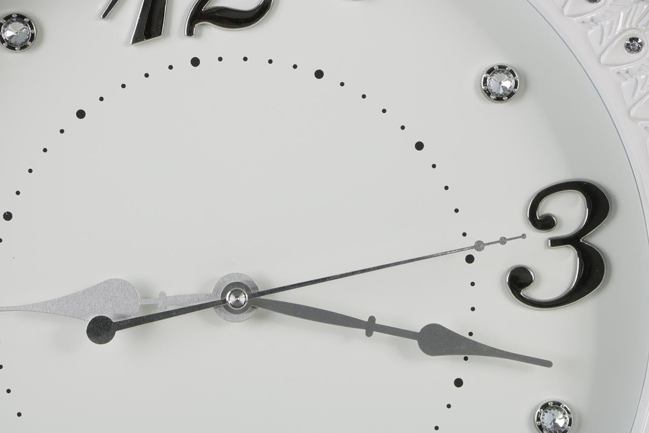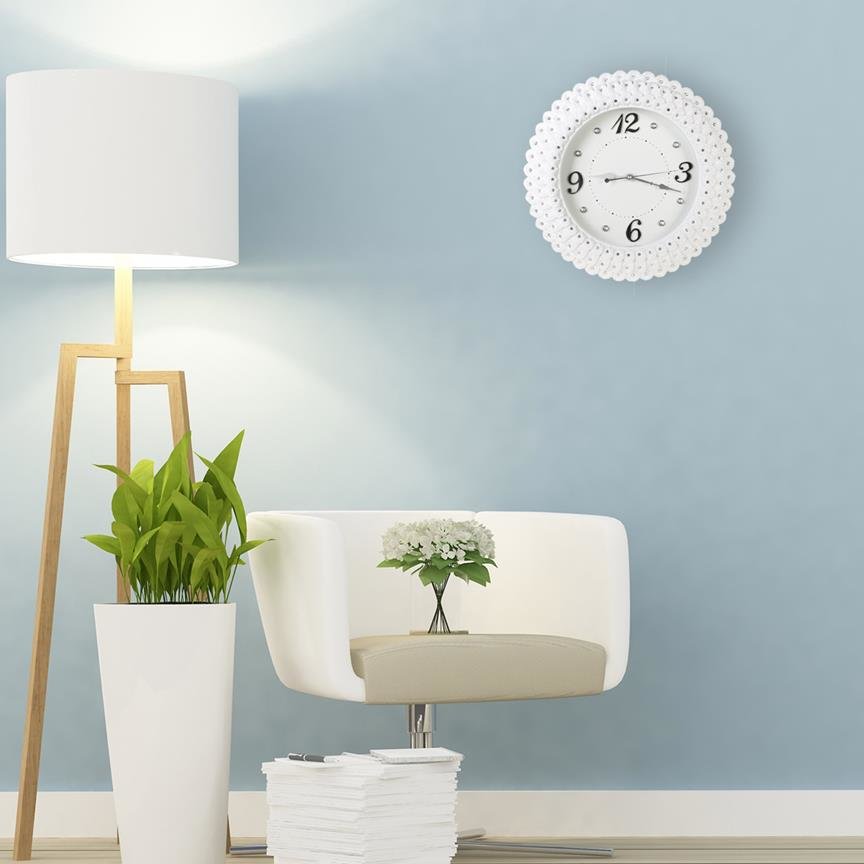 Teslimat: 1x Almina Çiçek Desenli Yuvarlak Duvar Saati - Beyaz