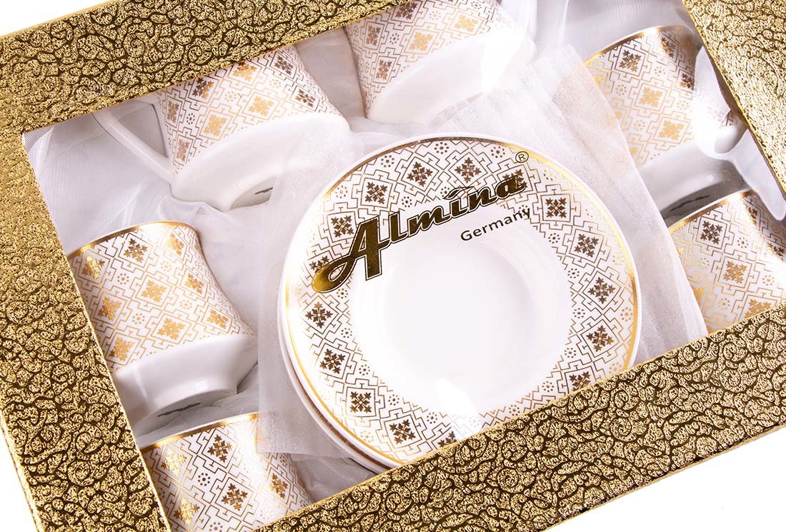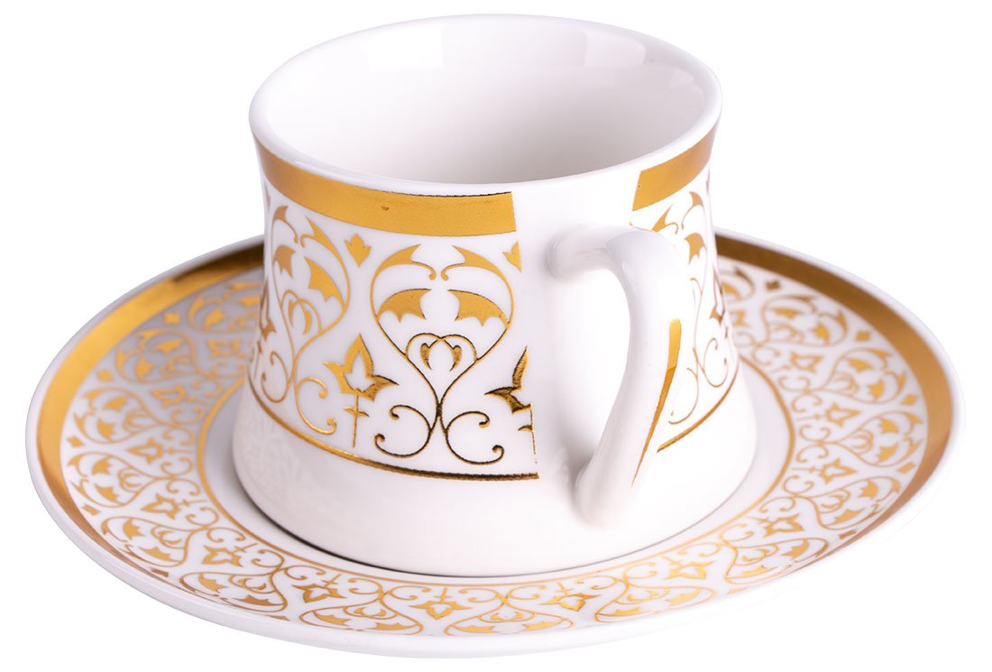 Livraison et dimensions: 1 x grand service à café Almina 6 pièces en porcelaine 175 ml | Or blanc | Al-5882-g