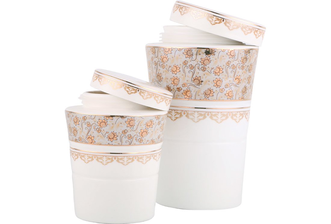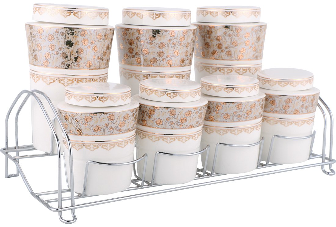 Livraison et dimensions: 1 x Almina 15 pièces Spice Bowl 7 pièces Porcelaine | Or crème | Al-3420-g