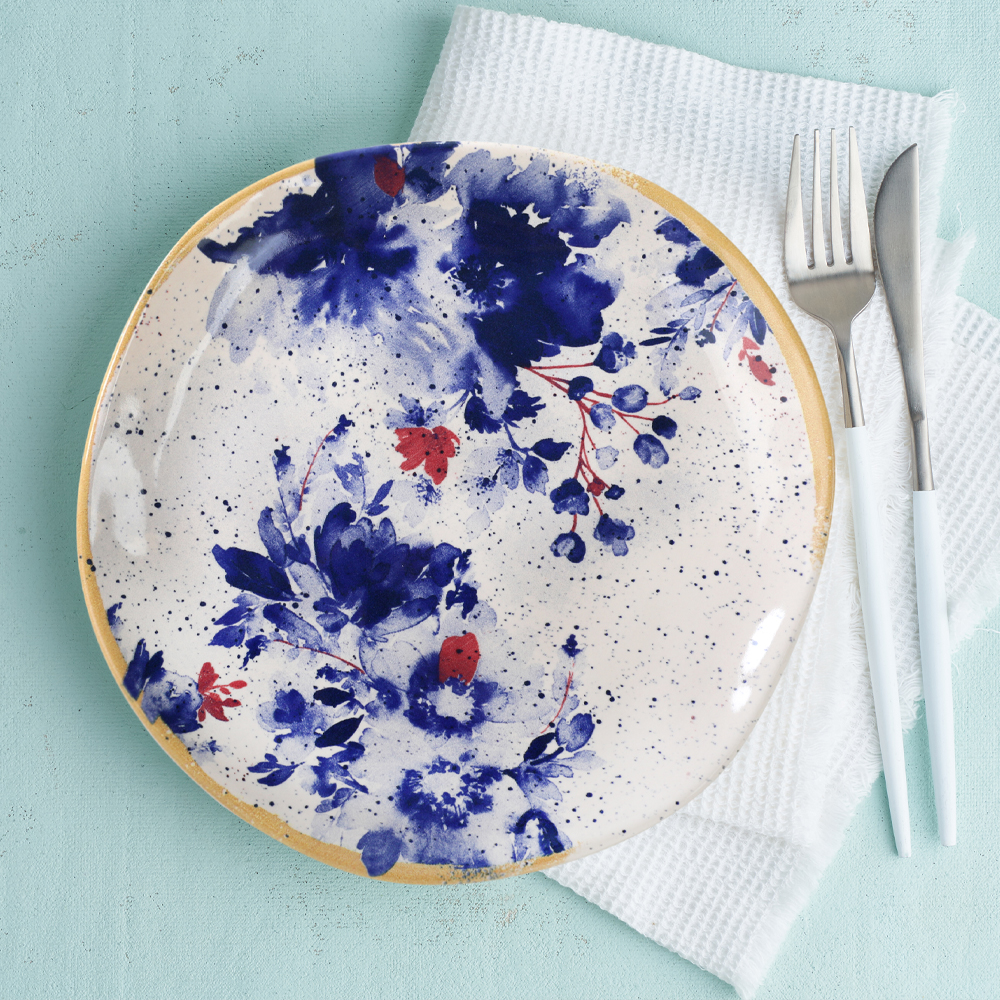 La série Mimoza, où se rencontrent des motifs floraux accrocheurs et la couleur magique du bleu, a été spécialement conçue pour vous permettre de préparer les tables les plus spectaculaires. Les assiettes à gâteaux bio, faisant partie de cette série qui reflèteront votre noblesse aux tables, seront une excellente option pour compléter votre ensemble.