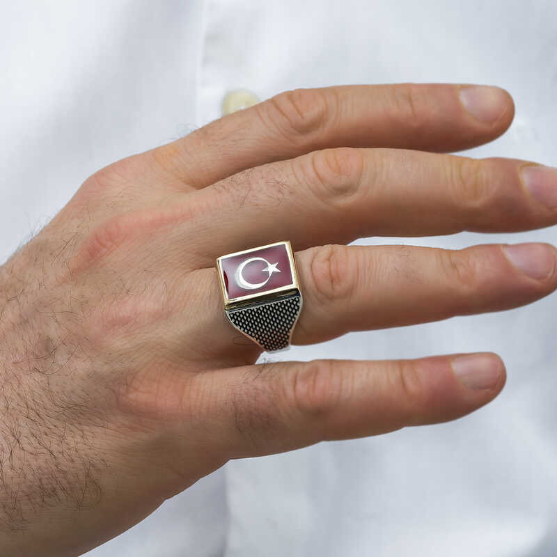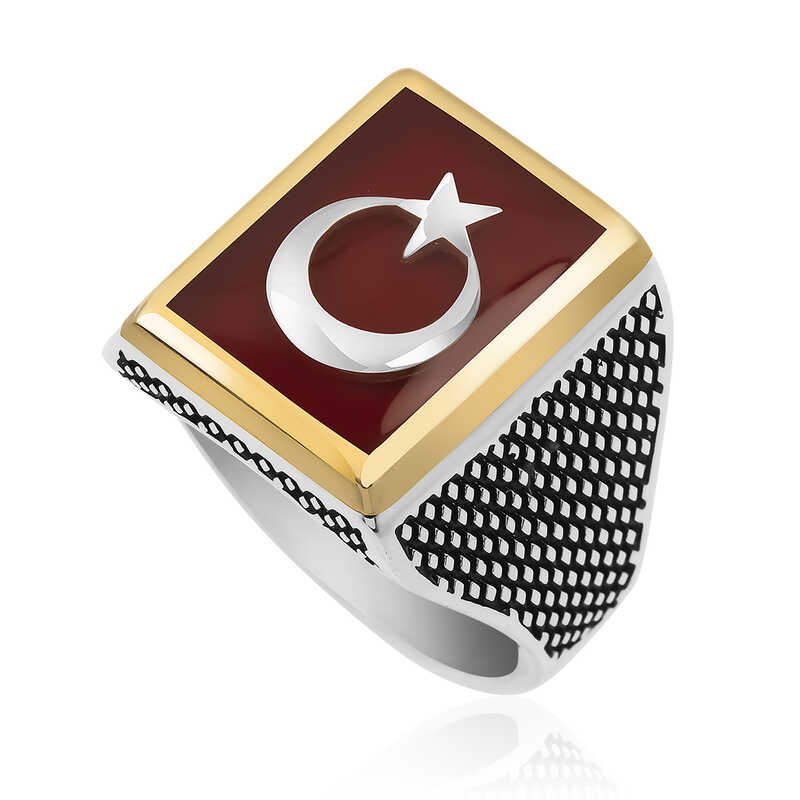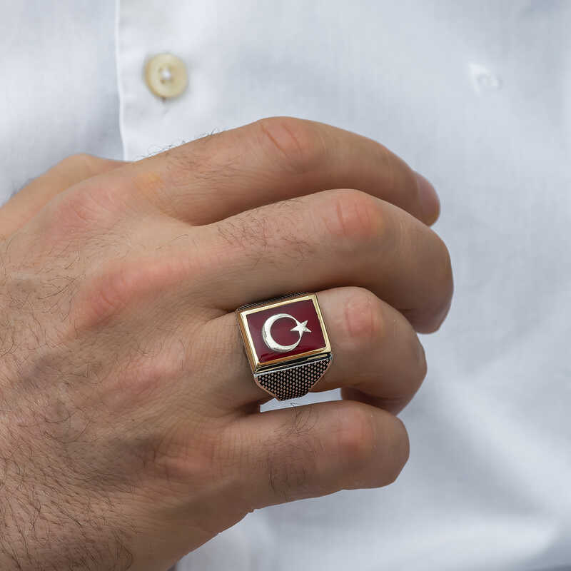 Livraison: 1 x Bague en argent avec drapeau turc de la série Organisation