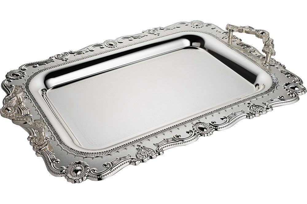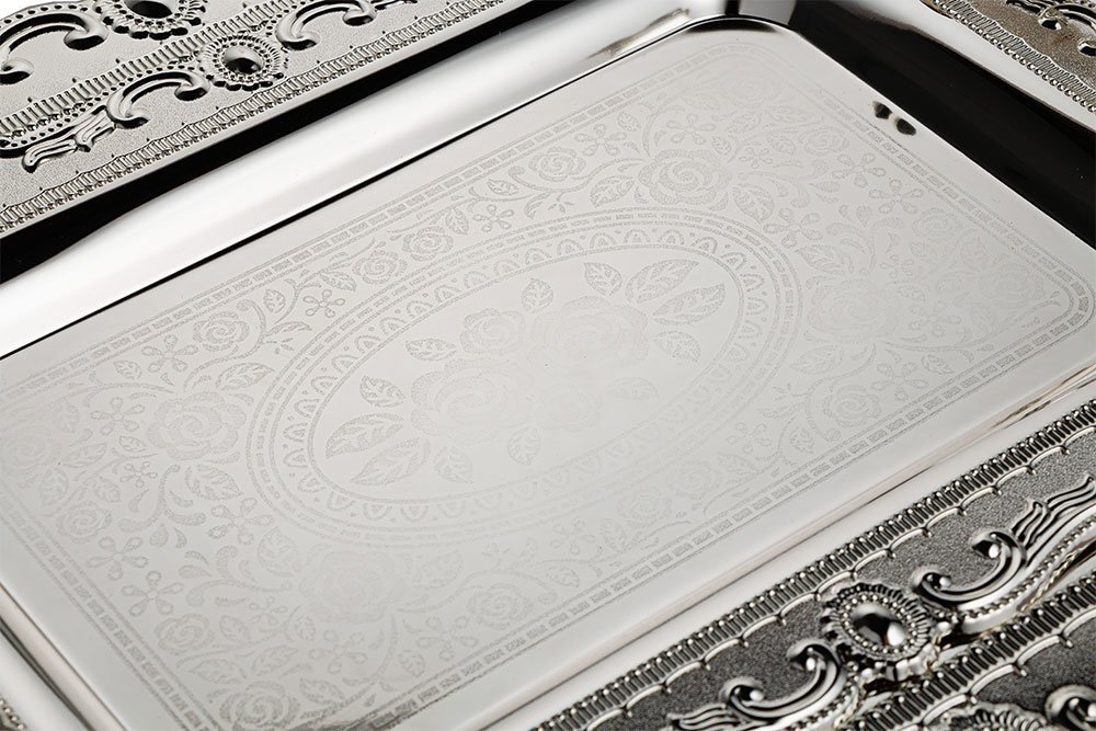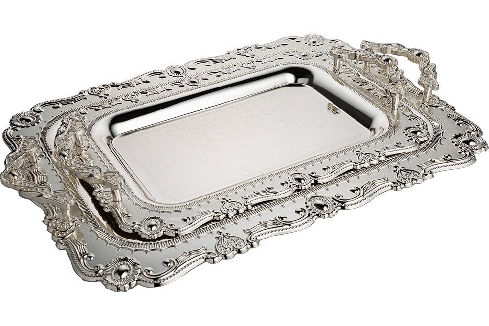 Livraison : 1 x Bavary | Lot de 2 plateaux | Métal | Argent | Par-2208l-2s-mh53