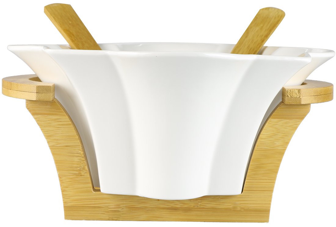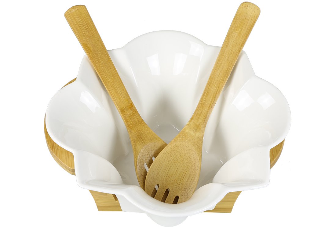 Livraison et dimensions: 1 x bol de service à salade Duygu | Bambou et porcelaine | Dg-6223