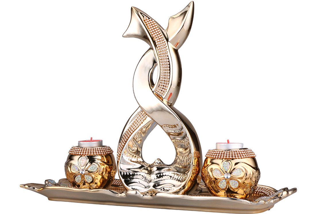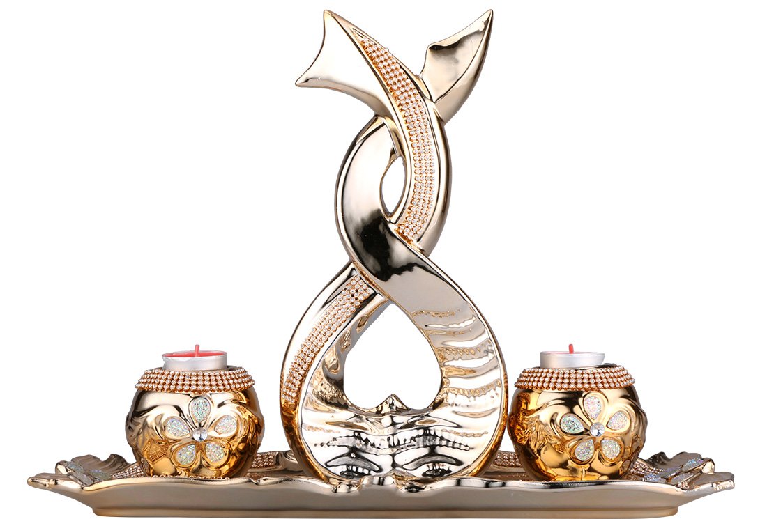 Livraison et dimensions: 1 x bougeoir décoratif en porcelaine Almina 4 pièces | Or | Al-2546-g