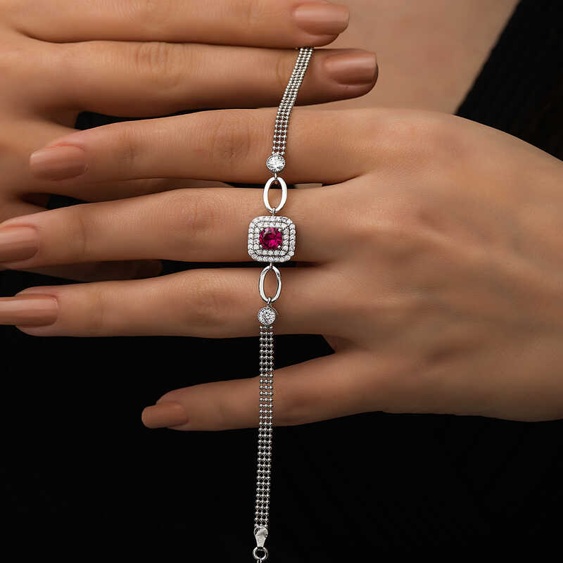 Les bracelets en argent, qui font partie des accessoires préférés des occasions spéciales et du quotidien, vous répondent avec leurs designs originaux. En examinant les modèles de bracelets qui vous offrent les moyens les plus élégants de souligner votre style et de le refléter à l'extérieur, vous pouvez avoir des modèles de bracelets que vous pouvez utiliser à tout moment de la journée. Le bracelet pour femme en pierre rose à monture carrée en argent fait également partie de ces bracelets. Le bracelet en pierre baguette colorée, que vous pouvez utiliser lors de vos occasions quotidiennes et spéciales, est en argent sterling 925. Plaqué rhodium sur argent. Les produits en argent rhodié conservent longtemps leur éclat. Comme pour tous les bracelets en argent, le modèle de bracelet pour femme en pierre rose à monture carrée en argent est fabriqué à la main. Il peut y avoir un écart de ± 10 % dans le poids du produit spécifié en raison de l'argent et des pierres précieuses.