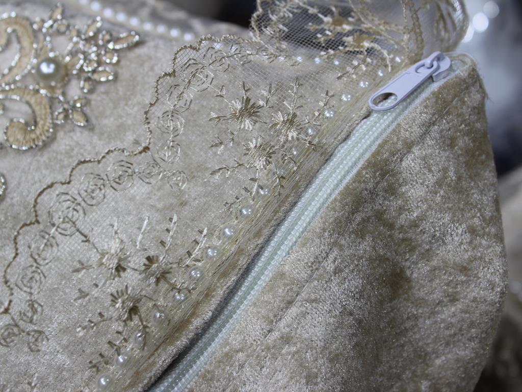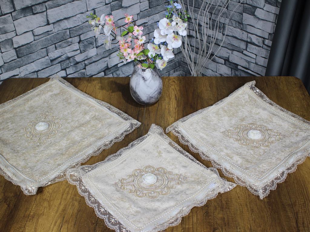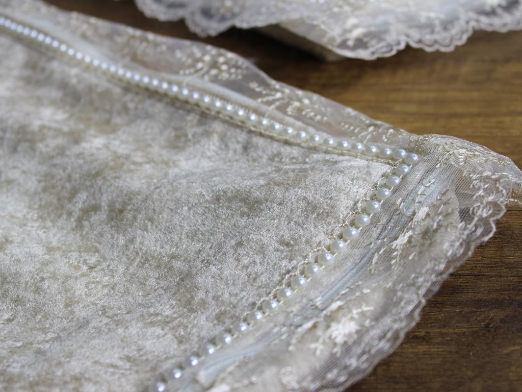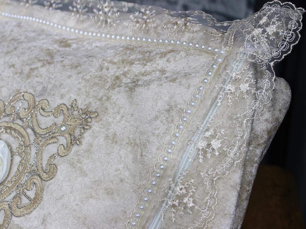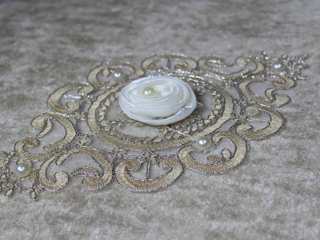 Çeyiz Diyarı Fransız Güpürlü Nazende Kadife 3 Lü Bohça Seti Cappucino