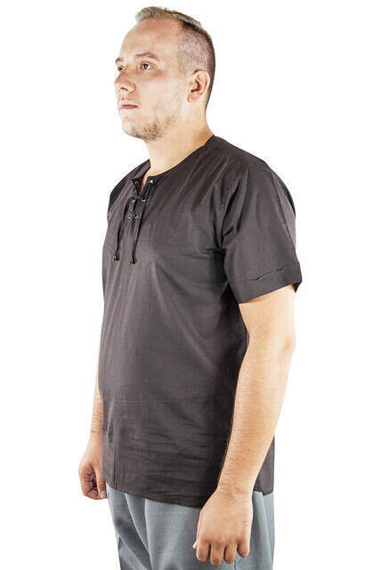 Informations sur le produit "Chemise en lin à manches courtes et à col ras du cou - Marron"
