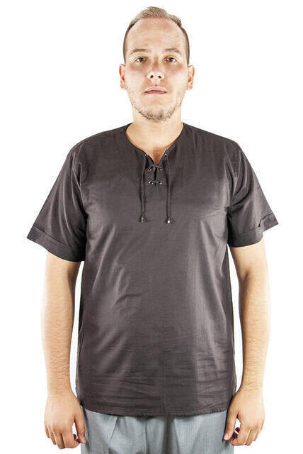 Chemise en lin islamique à col rond coupe décontractée à manches courtes Hajj Omra