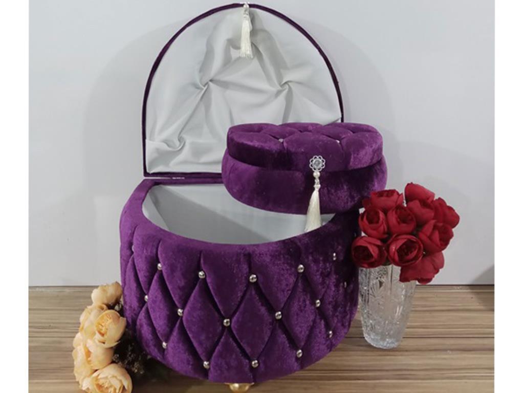 Informations sur le produit "Coffre de dot modèle D à pompons 2 litres prune"