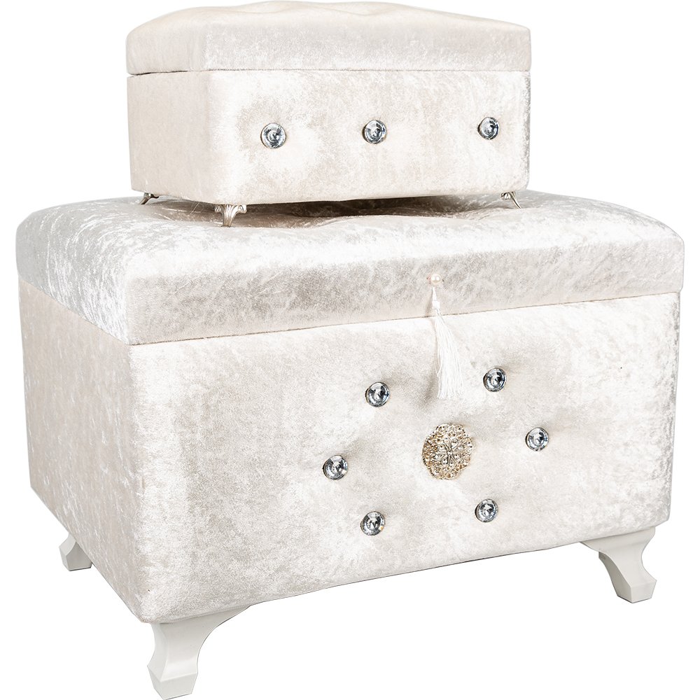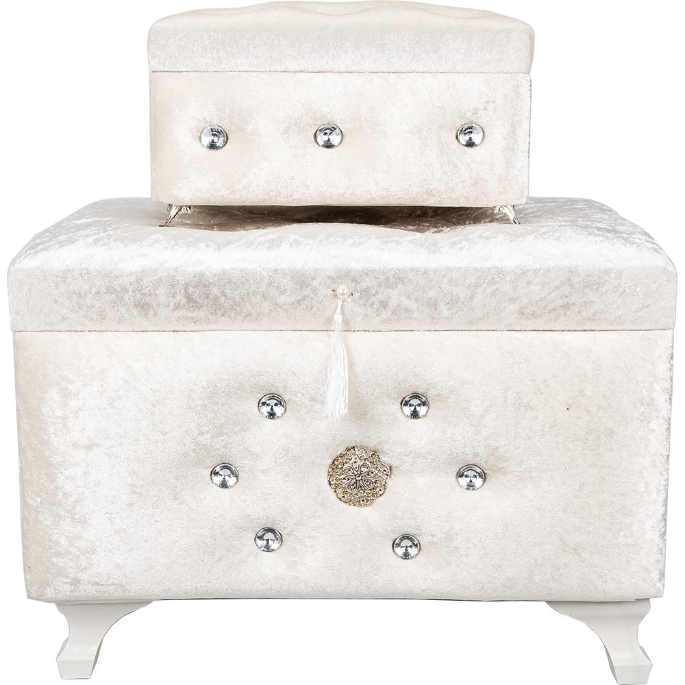 Livraison et dimensions: 1 x Coffre de dot décoré à 2 décorations | Blanc | Par-sdkast04w