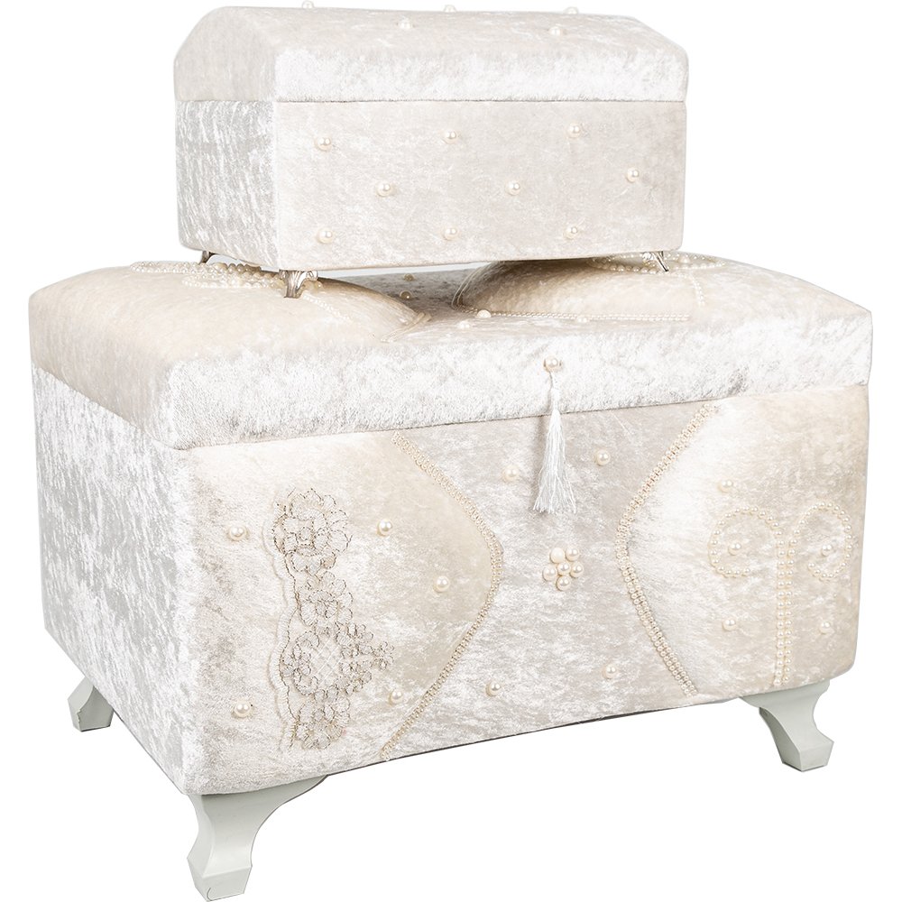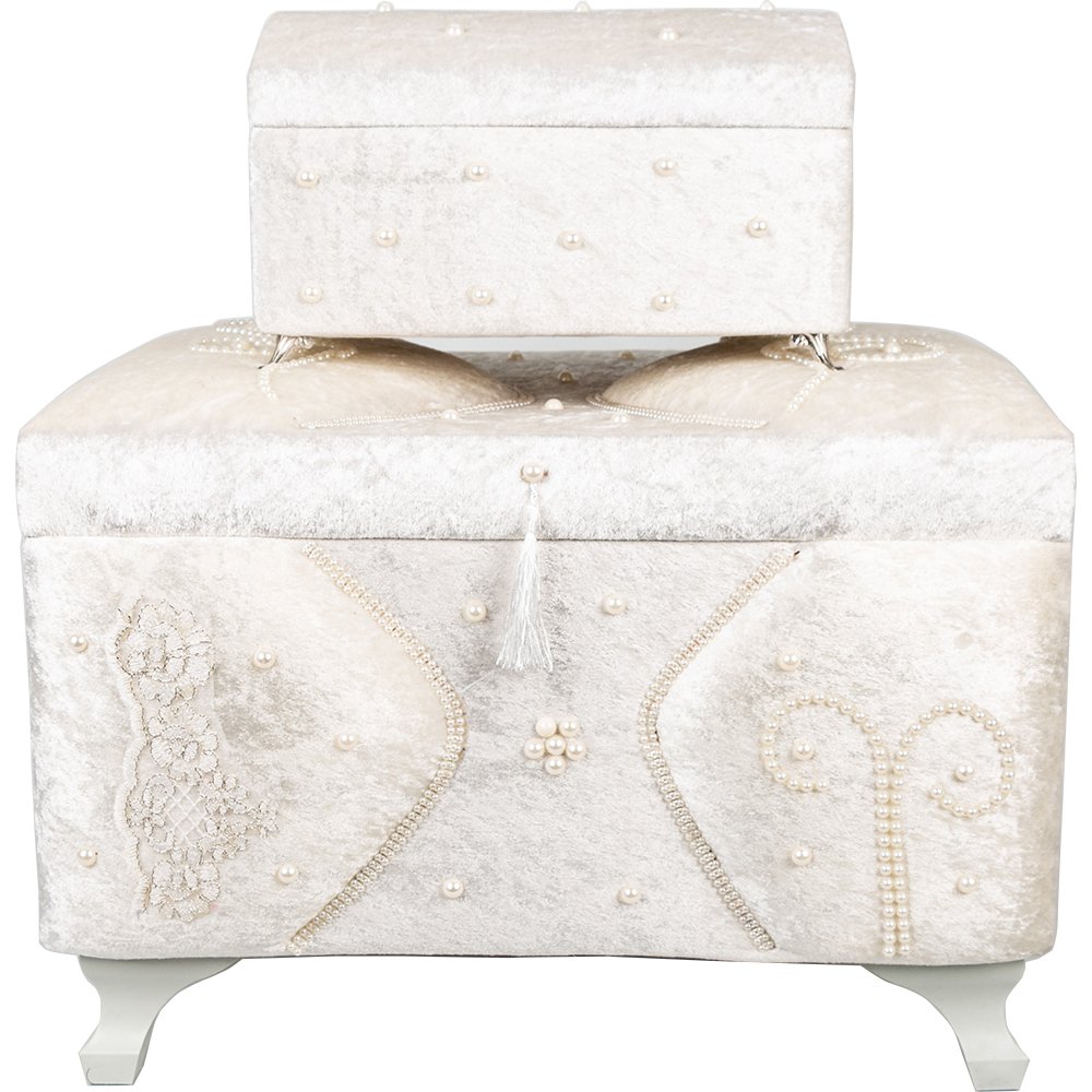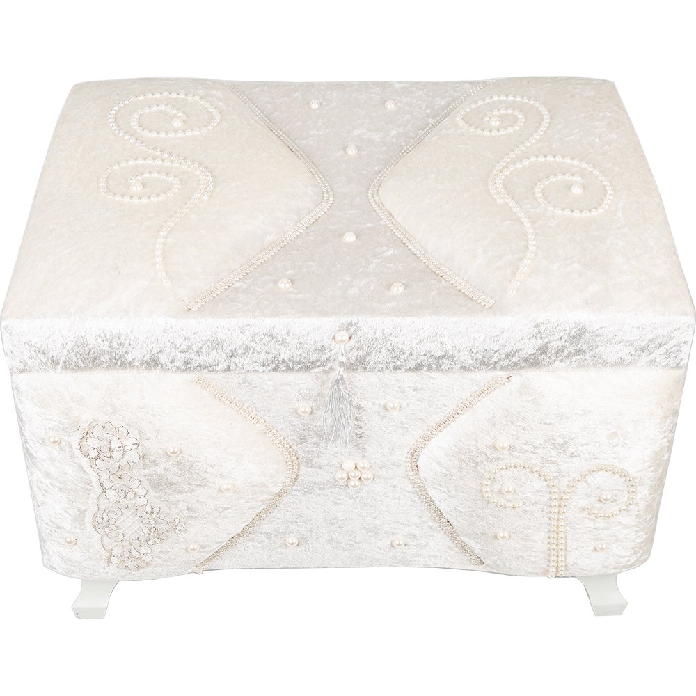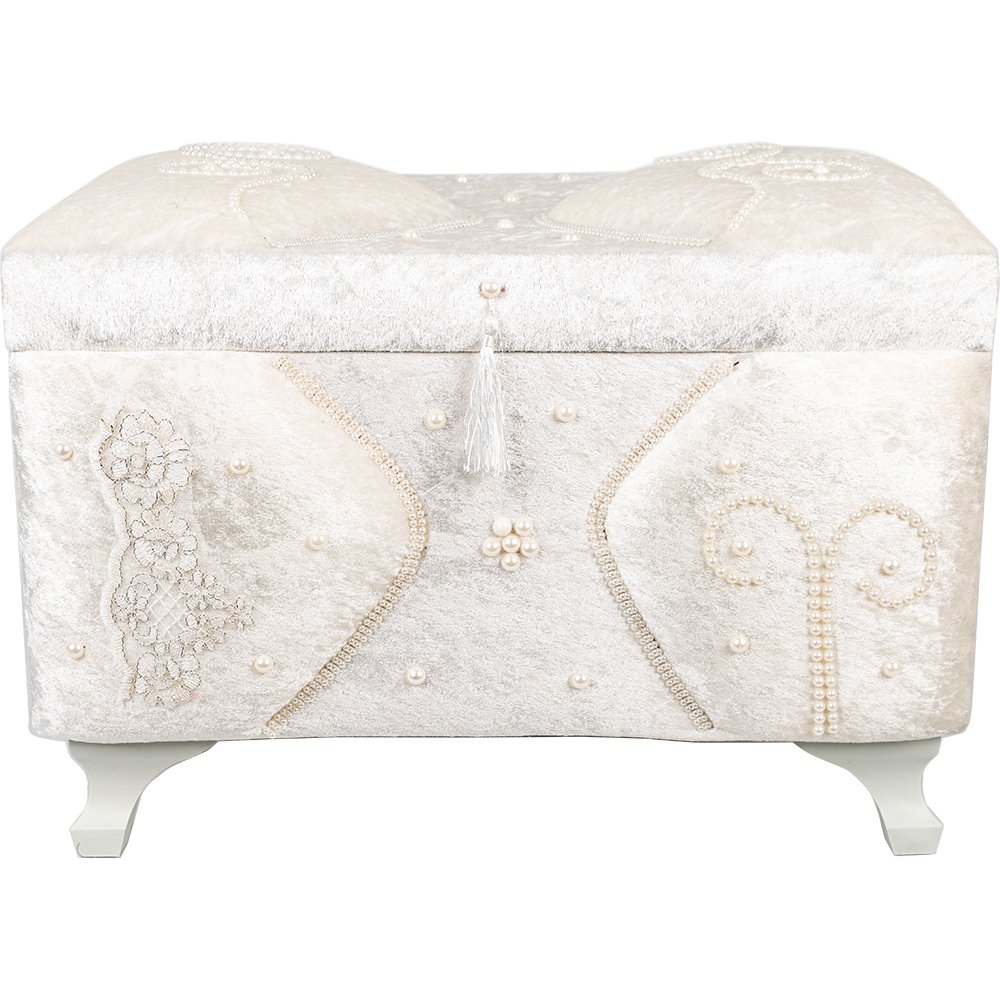Livraison et dimensions: 1 x Coffre de dot décoré à 2 décorations | Blanc | Par-sdkast06w