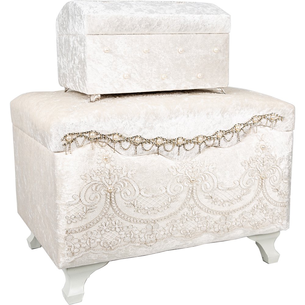 Livraison et dimensions: 1 x Coffre de dot décoré à 2 décorations | Blanc | Par-sdkast11w