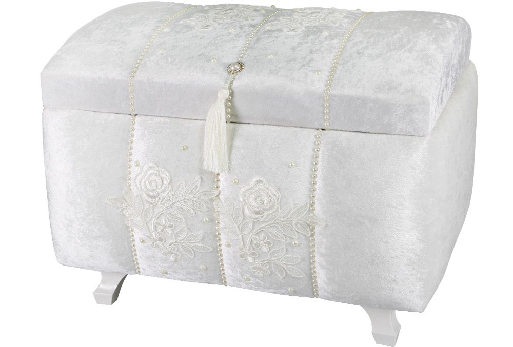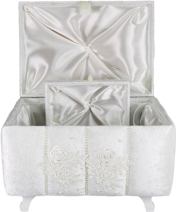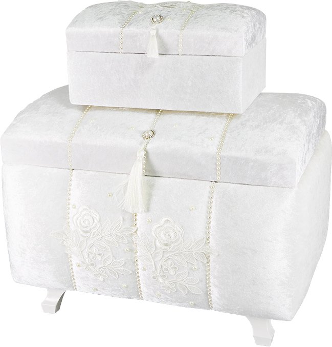 Livraison et dimensions: 1 x Coffre à douilles Decoonaz 2 pièces décoré de perles | Crème | SDK-0023