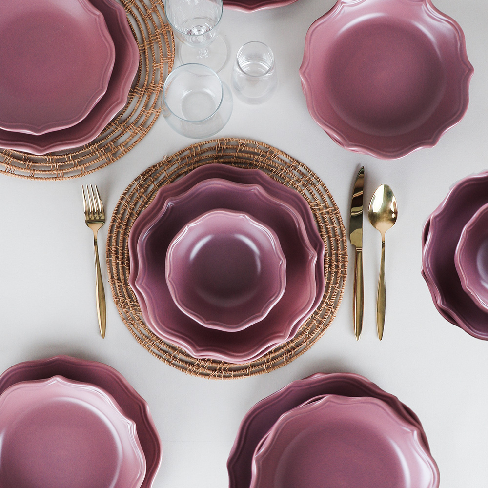 Conçu avec des formes modernes, le service à dîner keramika romeo pour 12 personnes est fabriqué avec soin en étant façonné par des mains habiles. Vous pouvez utiliser l'élégance et la structure utile de la couleur violette dans vos petits-déjeuners et dîners élégants. Vous pouvez également choisir cette vaisselle qui fera en sorte que vos proches se sentent précieux comme un cadeau élégant.