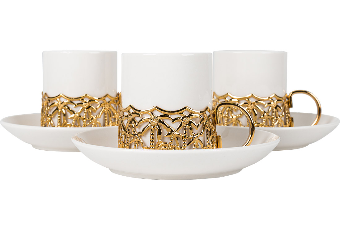 Livraison et dimensions : 1 x Dekonase | Ensemble de 6 tasses à café turc | 12 pièces | Porcelaine | Sultan Design | Gp-0084