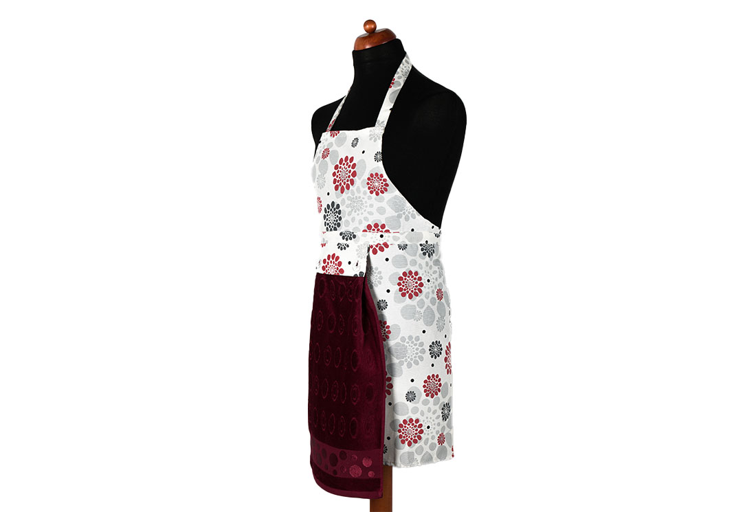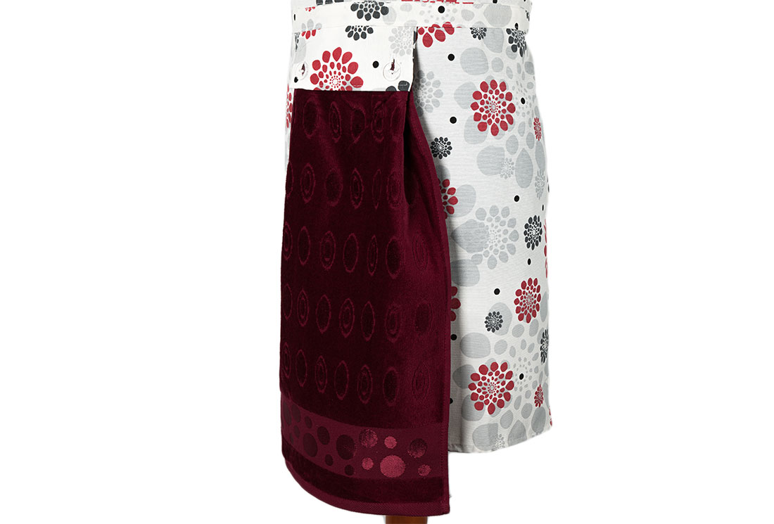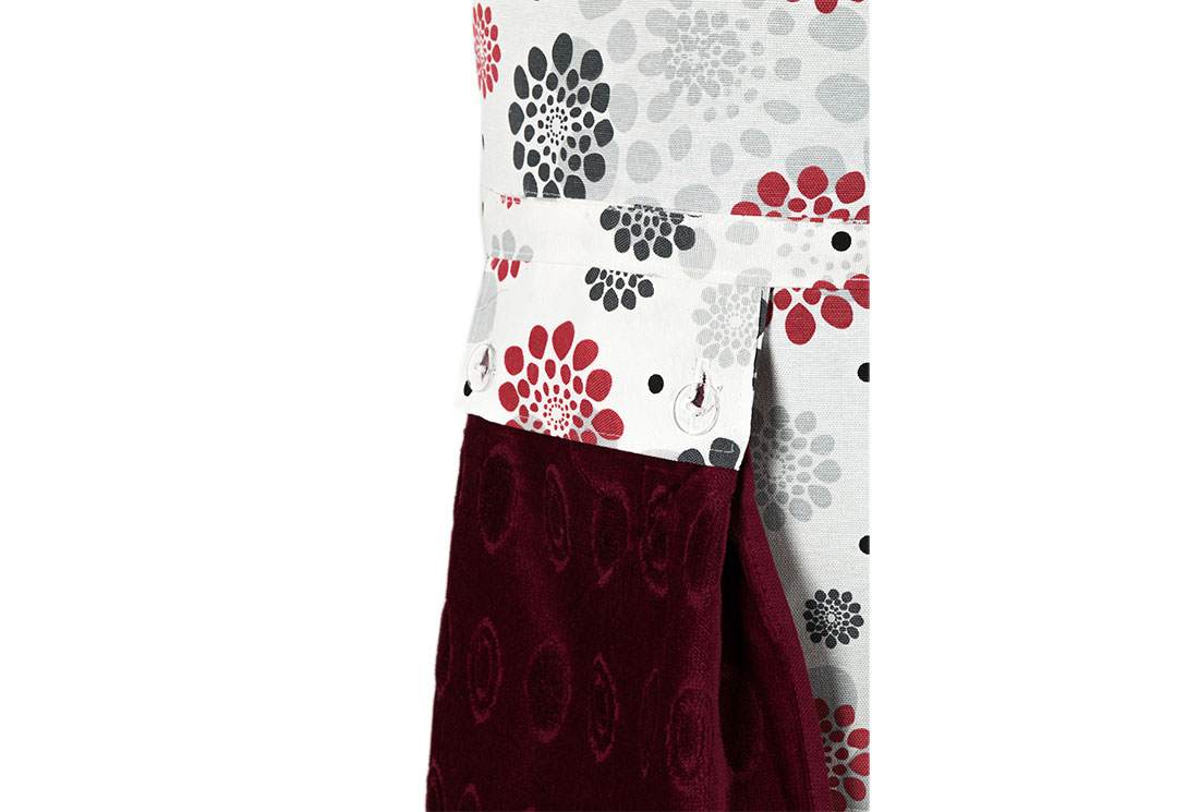 Livraison et dimensions : 1x tablier de cuisine à motif floral Dekonaz | Avec serviette rouge bordeaux et chiffon à main cadeau | 73 cm x 59 cm