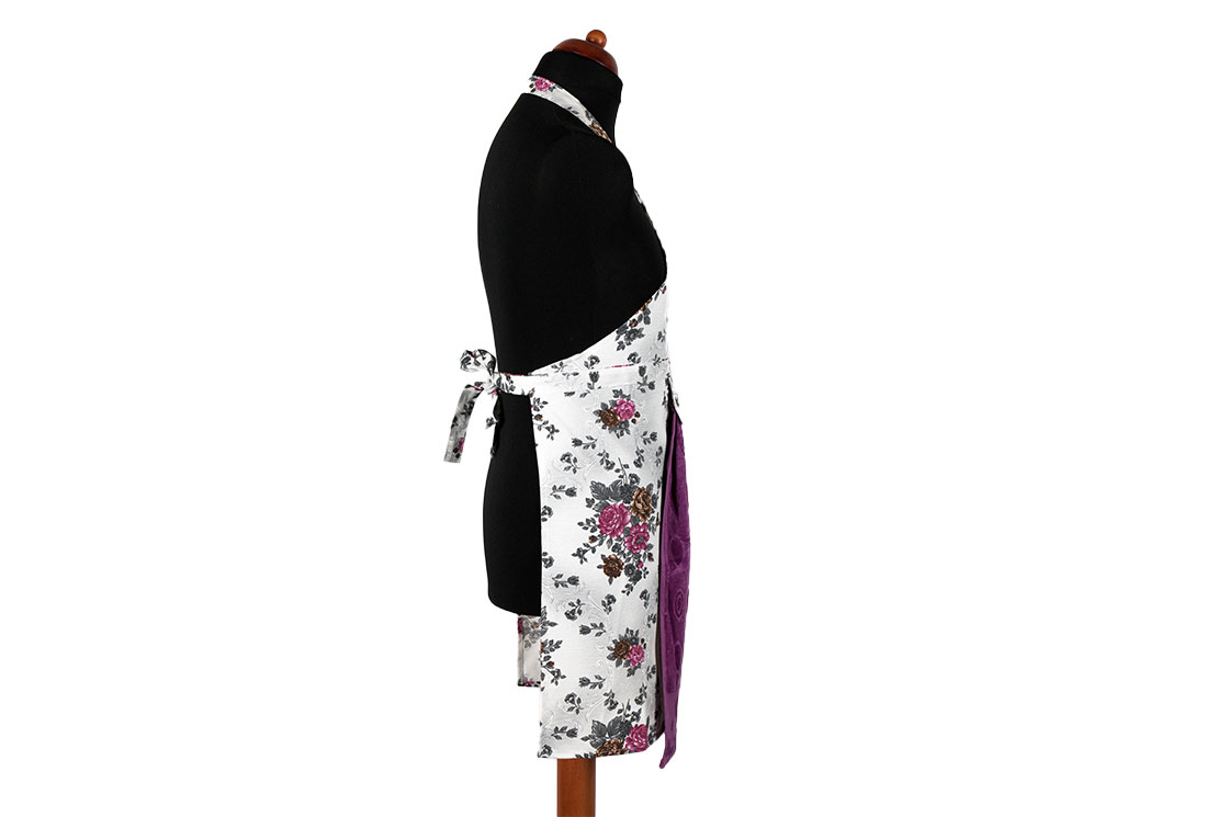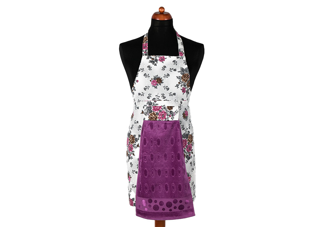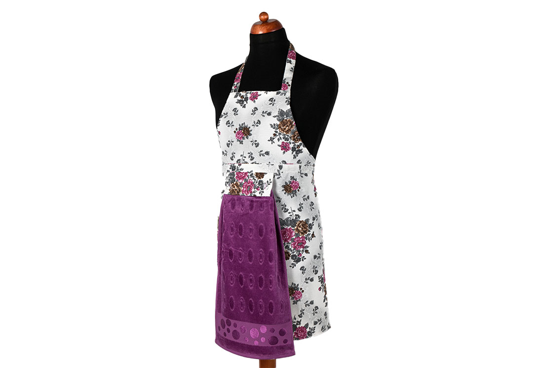 Livraison et dimensions : 1x tablier de cuisine à motif floral Dekonaz | Serviette violette et cadeau de chiffon à main | 73 cm x 59 cm