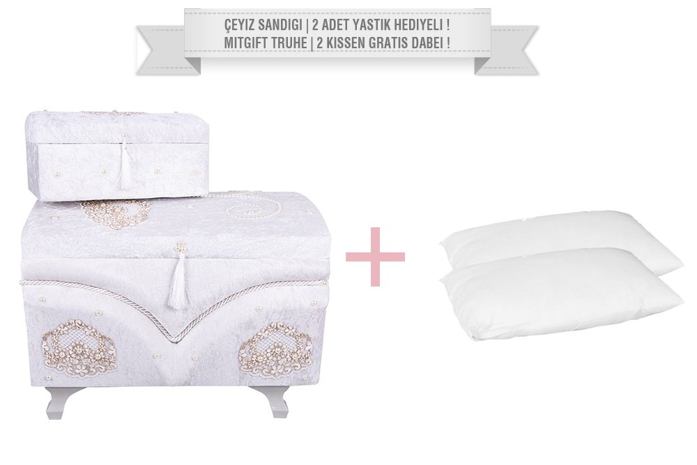 Teslimat ve Boyutlar: 1 x Dekonaz 2'li Dantel İnci Süslemeli Çeyiz Sandığı By-sdk-0005