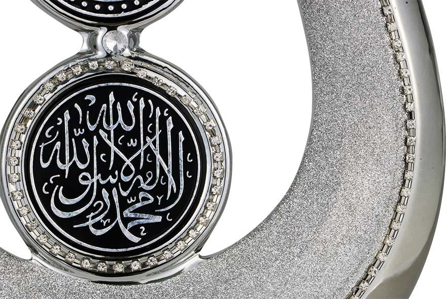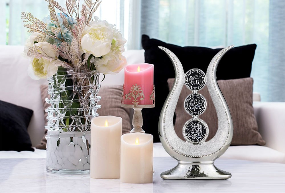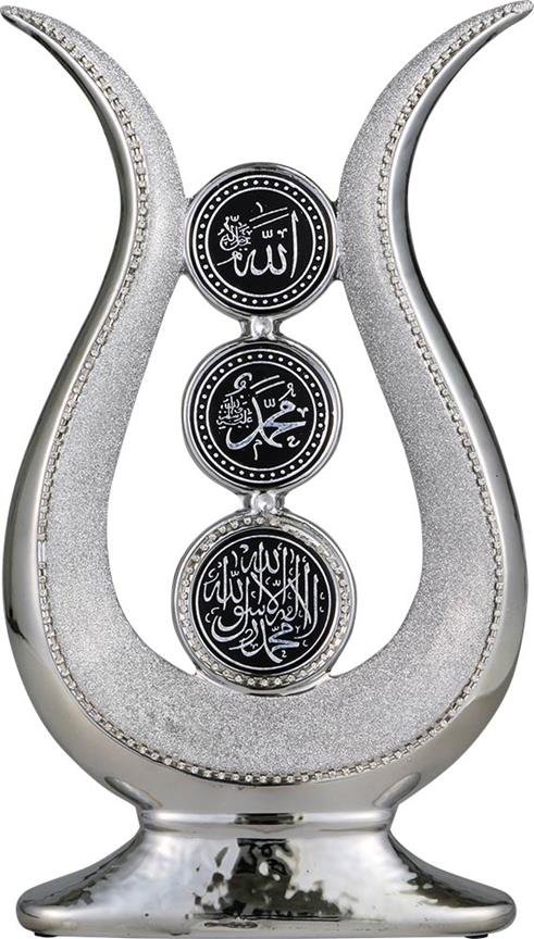 Teslimat ve Boyutlar: 1 x Dekonaz "Allah ve Muhammed" Yazılı Dini Biblo | Gümüş | 23x44cm | Mck-025-silver