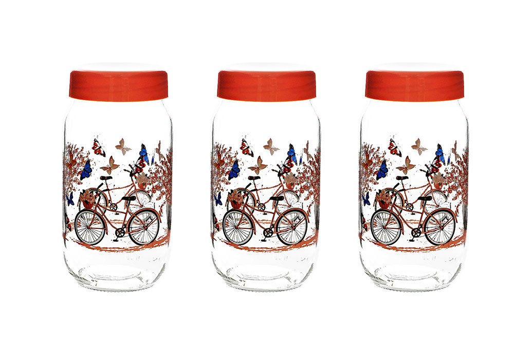 Livraison et dimensions: 1 x ensemble de bocaux de rangement 3 pièces Dekonaz | Brise printanière | 1 litre | SKS-1